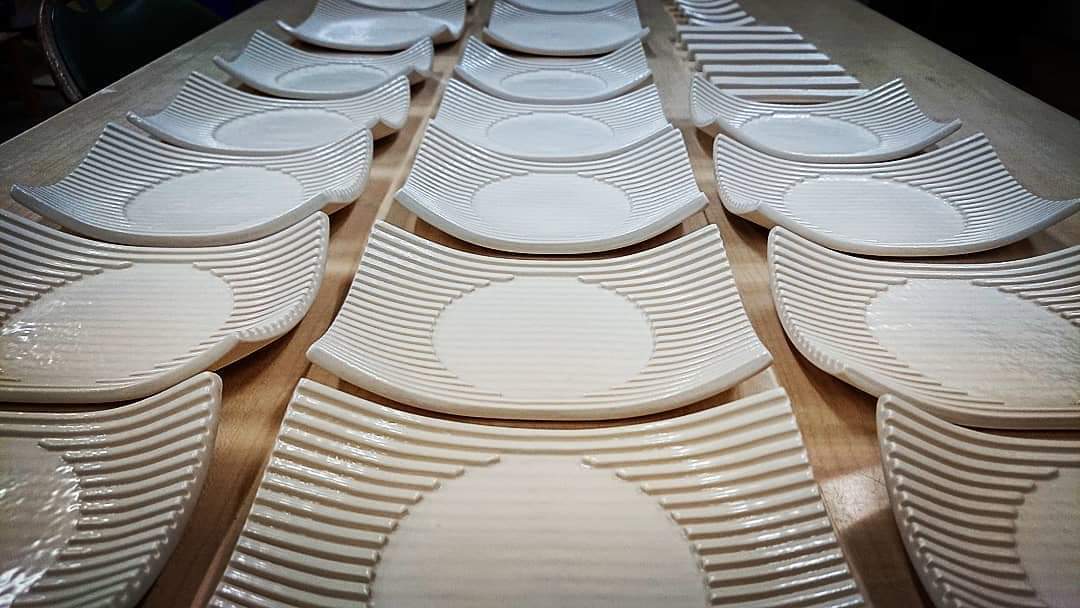 中央部は丁寧に丸く削ることにより、フラットな面を出しております。表面にはほのかに残る線の模様が、いつまでも続く波の波紋のようで美しいです。