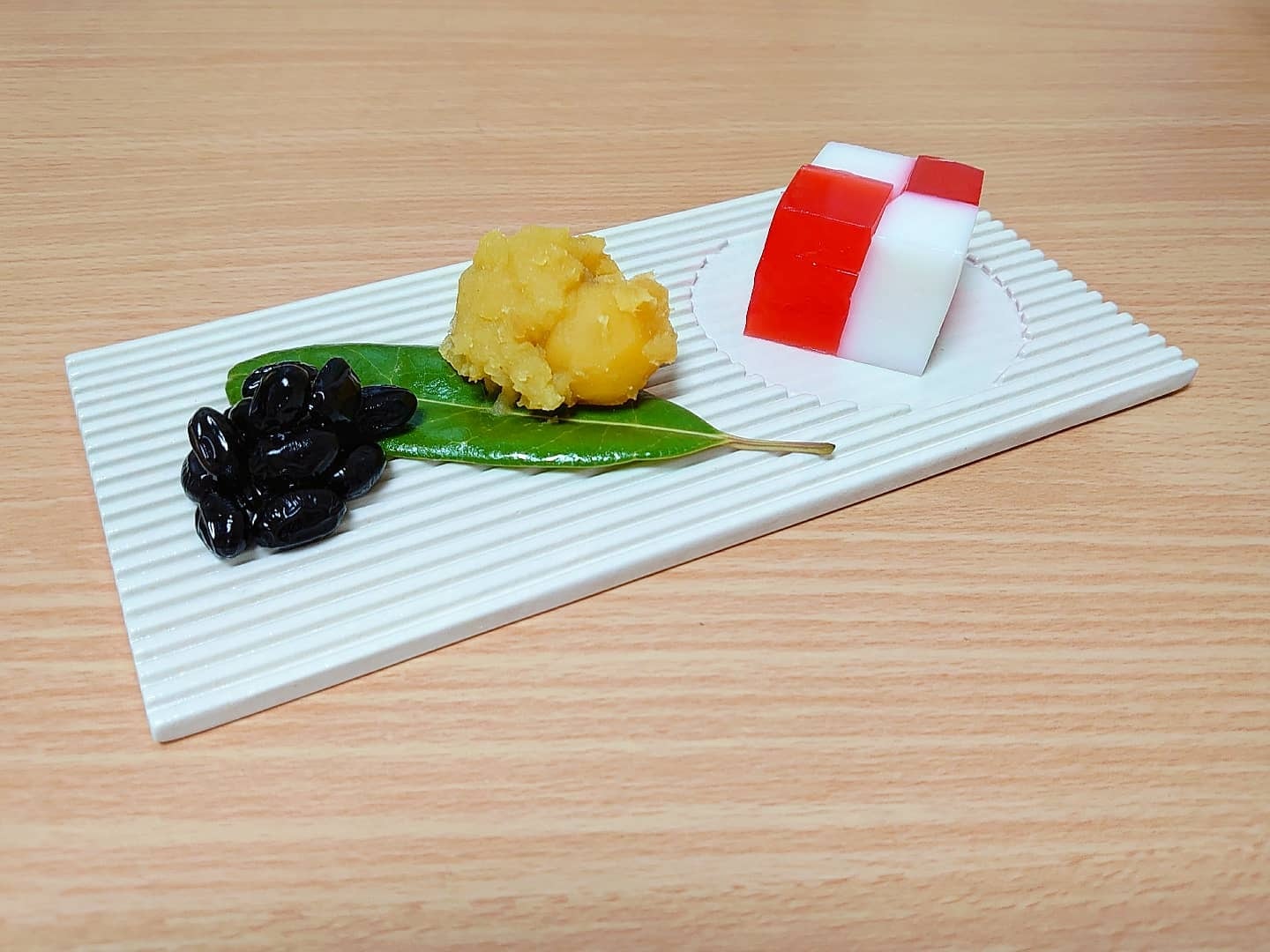 丸いところに季節の和菓子、波のところに季節の花や葉を添えたり。
